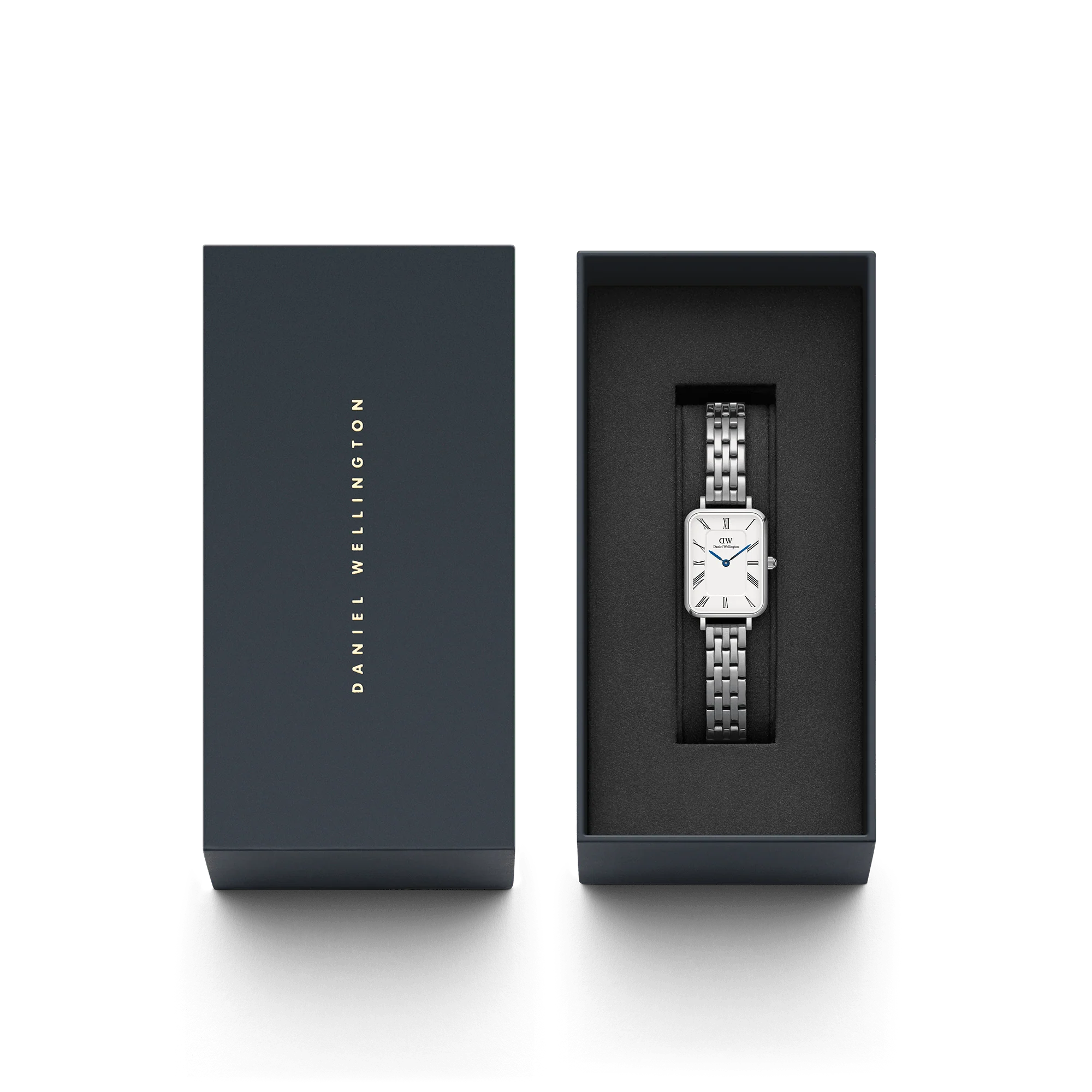 Original DANIEL WELLINGTON Watch Quadro Roman Numerals 5-Link Silver DW00100691 20x26mm