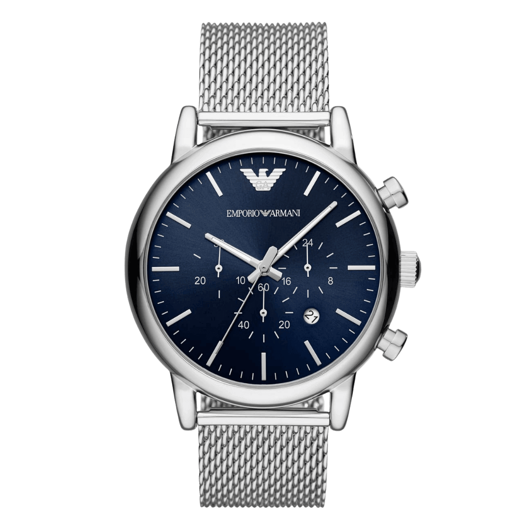 Original Emporio Armani Watch For Men Luigi AR80038 – With Blue Dial – Metal Belt With Silver Color. ”This Watch is brand new and 100% Authentic, and Comes with it’s original box, Bag, tags, and instruction manual”