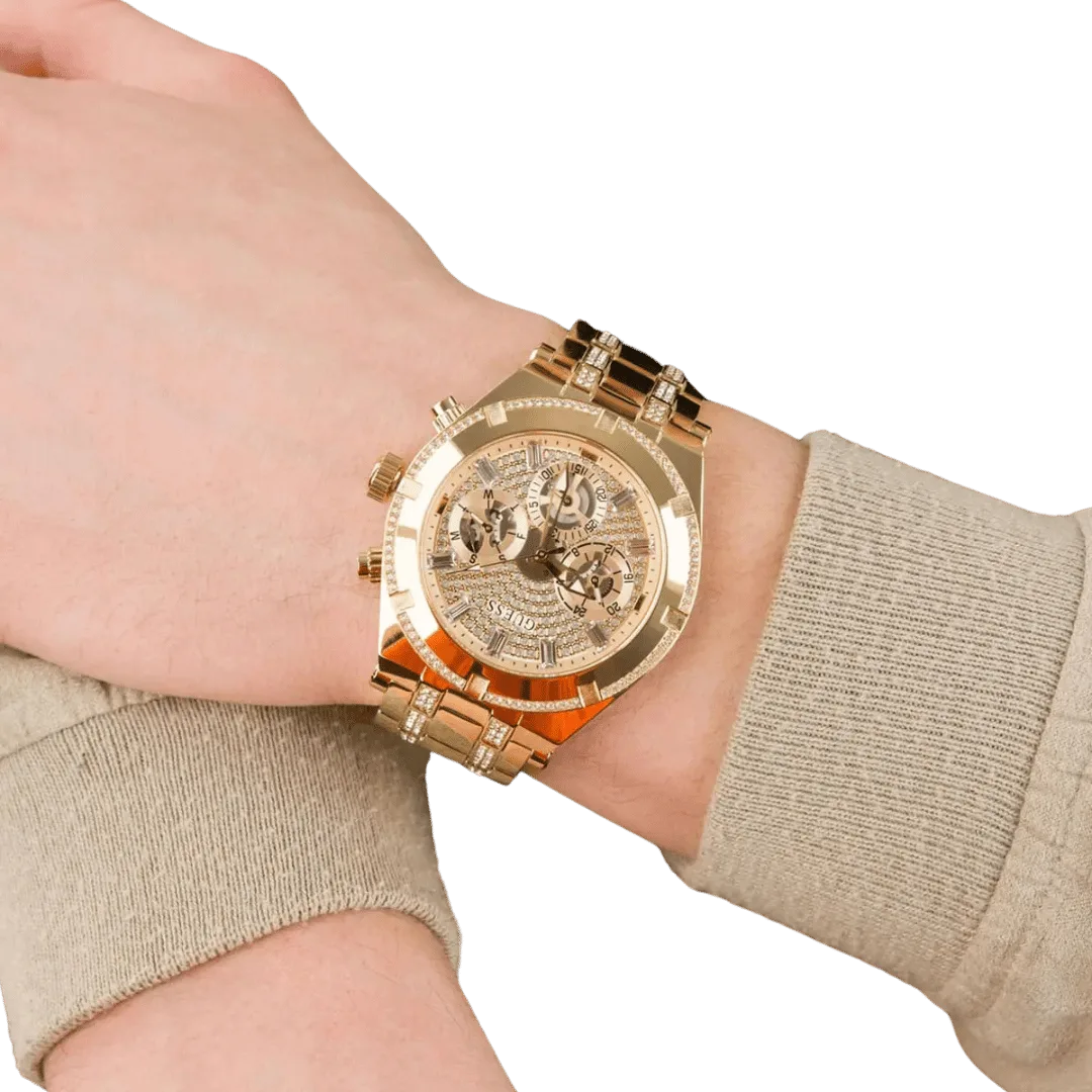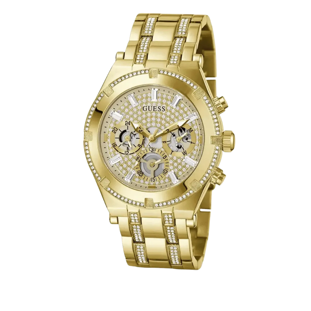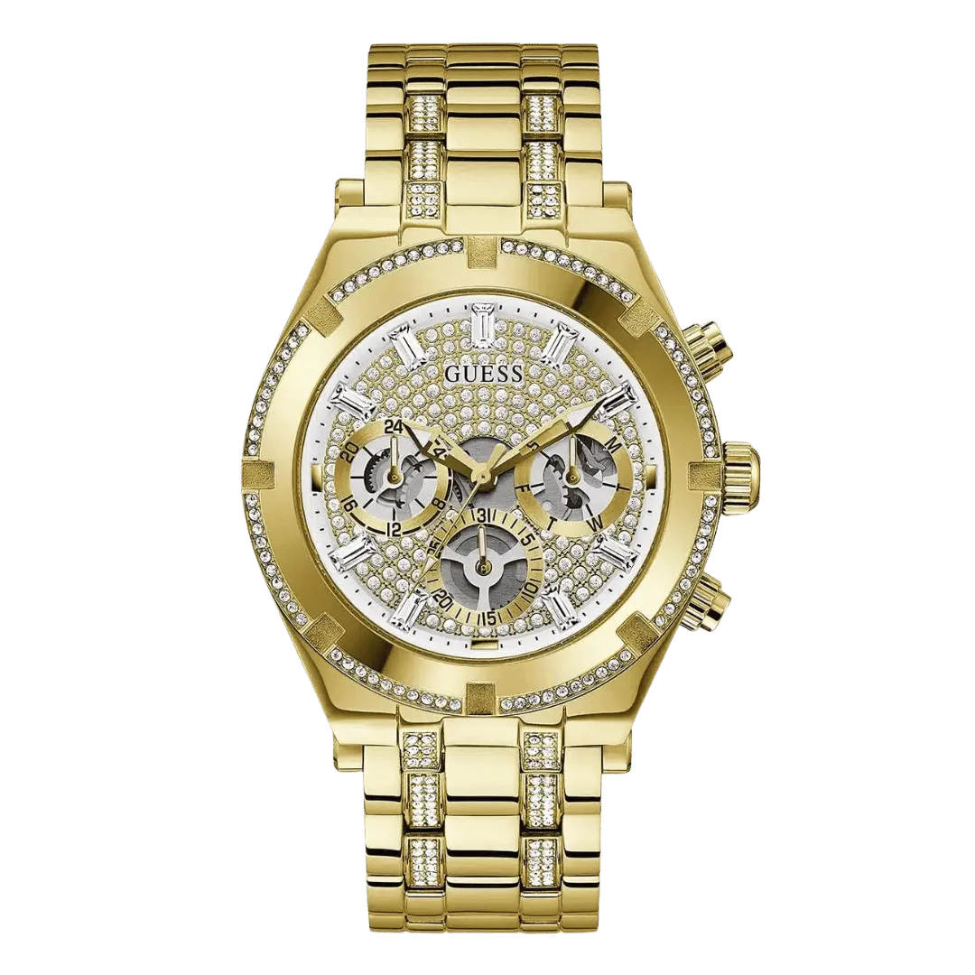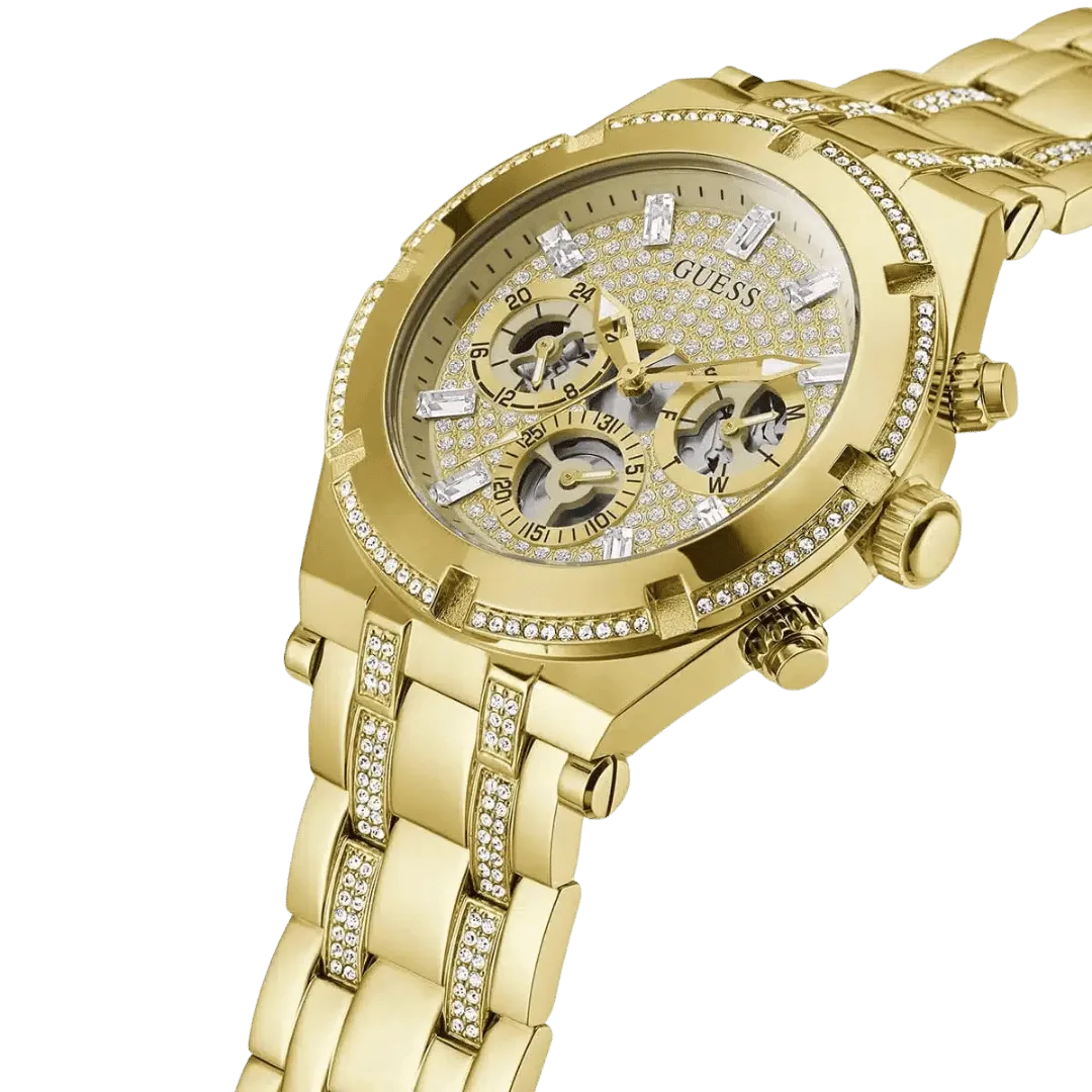 Original GUESS Mens Sport Multifunction 44mm Watch – Gold-Tone Stainless Steel Case with Crystal Dial GW0261G2