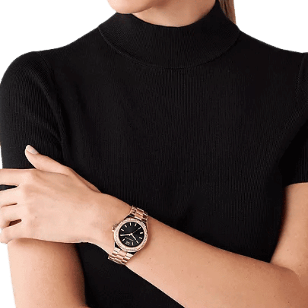 Original Michael Kors Watch For Women Lennox MK7233 Black dial Metal Belt Rose Gold Strap. ”This Watch is brand new and 100% Authentic, and Comes with it’s original box, Bag, tags, and instruction manual”