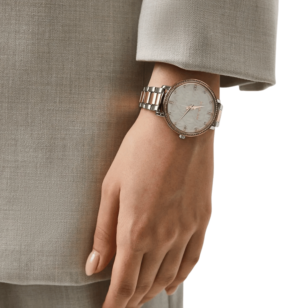 Metal belt with Silver and Rose Gold color – — ” This Watch is brand new and 100% Authentic, and Comes with it’s original box, Bag, tags , and instruction manual “