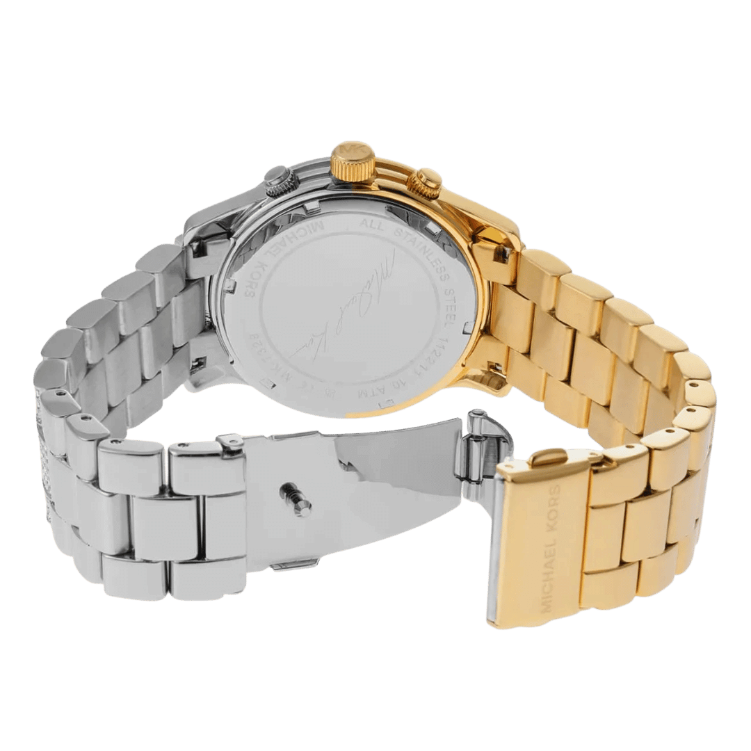With White dial , Featured with Crystals decorated , and Patterned MK Logo Strap