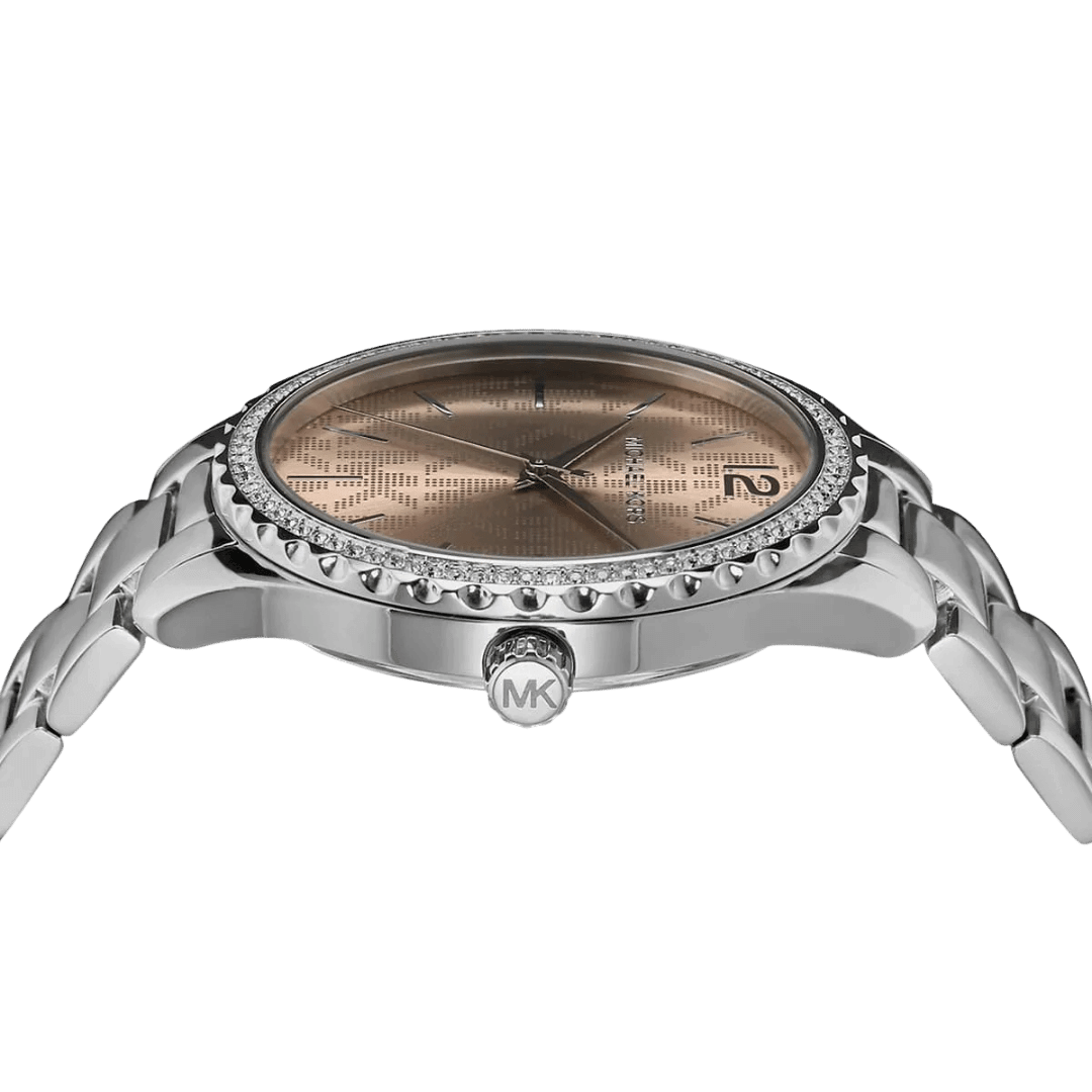 With Rose Gold dial , Featured with Crystals decorated and Patterned MK Logo Strap – 40mm – Water Resistant