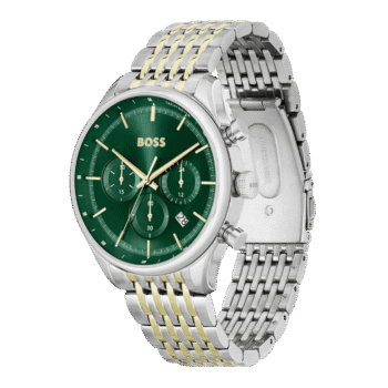 $366.00Original price was: $366.00.$252.00Current price is: $252.00.Original Hugo Boss Skytraveller Chronograph Watch 1514195 – Silver & Gold Case – Green Dial – Silver Strap – Quartz Movement. “This Watch is brand new and 100% Authentic, and Comes with it’s original box, Bag, tags, and instruction manual.”