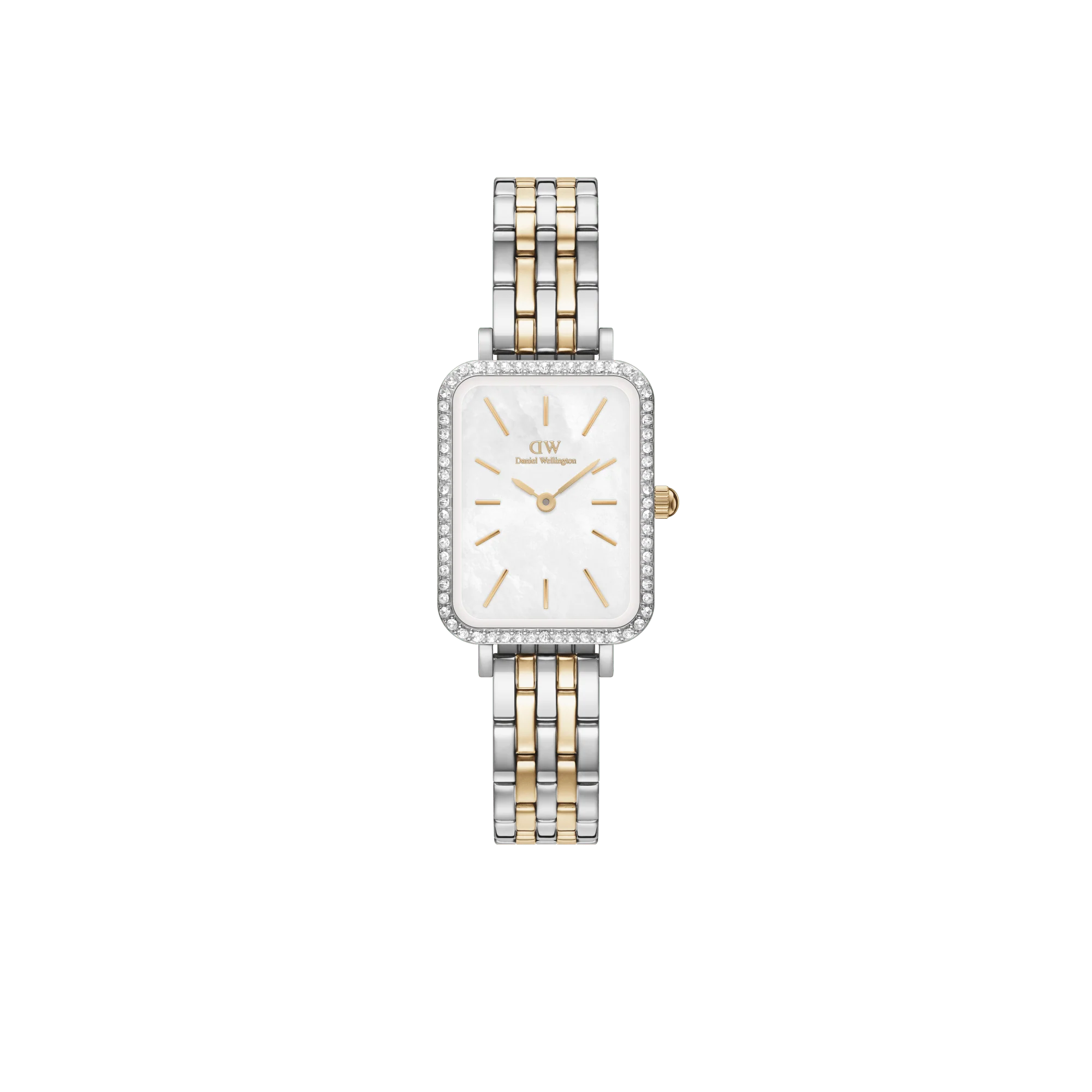 Original DANIEL WELLINGTON Watch Quadro Lumine Bezel 5-Link Two-Tone MOP DW00100671 20x26mm