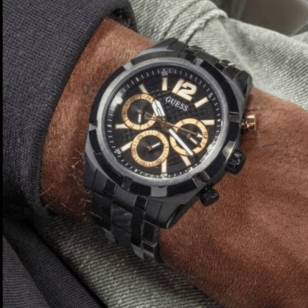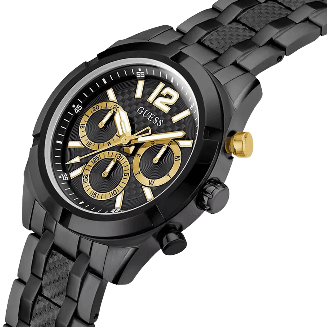 Original Guess Watch Resistance for Men GW0714G4 – Black dial – Black Recycled Steel Strap Belt – Quartz Machine – ”This Watch is brand new and 100% Authentic, and Comes with it’s original box, Bag, tags, and instruction manual”