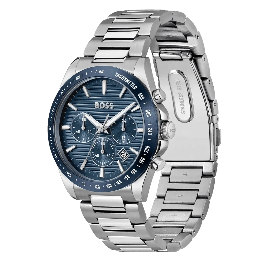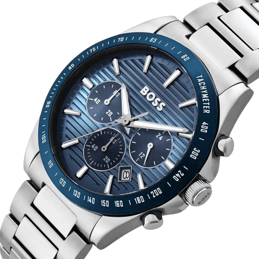 Original Hugo Boss Watch For Men Strike For Men 1514240 Blue dial Silver Metal Strap. ”This Watch is brand new and 100% Authentic, and Comes with it’s original box, Bag, tags, and instruction manual”