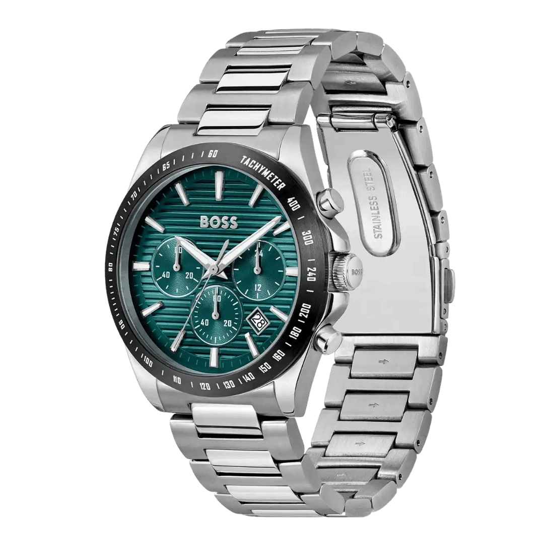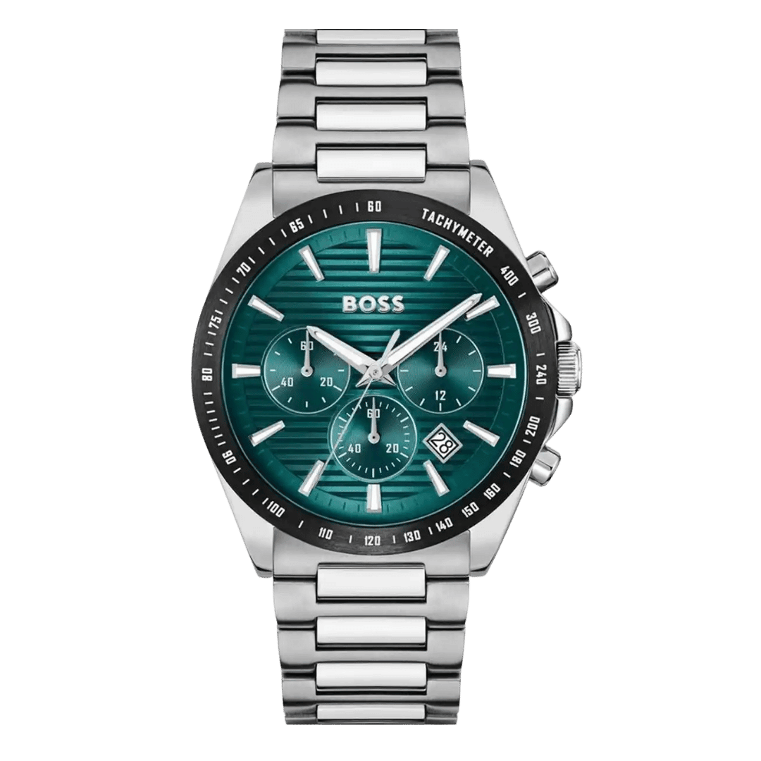 Original Hugo Boss Watch For Men Strike For Men 1514241 Green dial Silver Metal Strap. ”This Watch is brand new and 100% Authentic, and Comes with it’s original box, Bag, tags, and instruction manual”