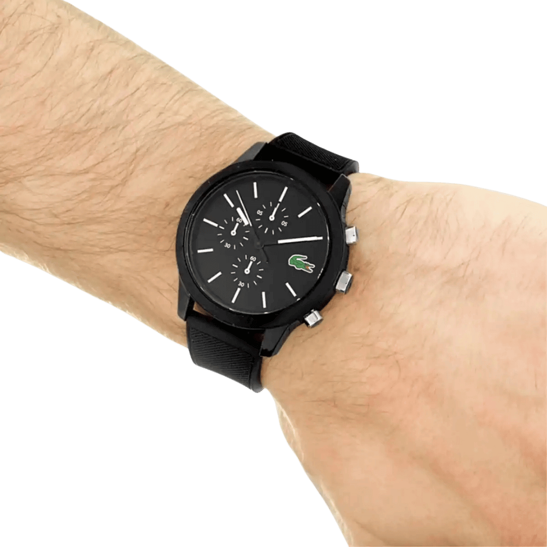 Original Lacoste Watch For Men Casual 2010972 Black dial Black Rubber Strap. Japanese movnt. ”This Watch is brand new and 100% Authentic, and Comes with it’s original box, Bag, tags, and instruction manual”