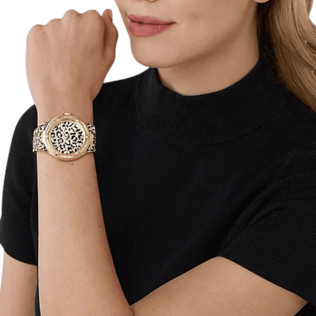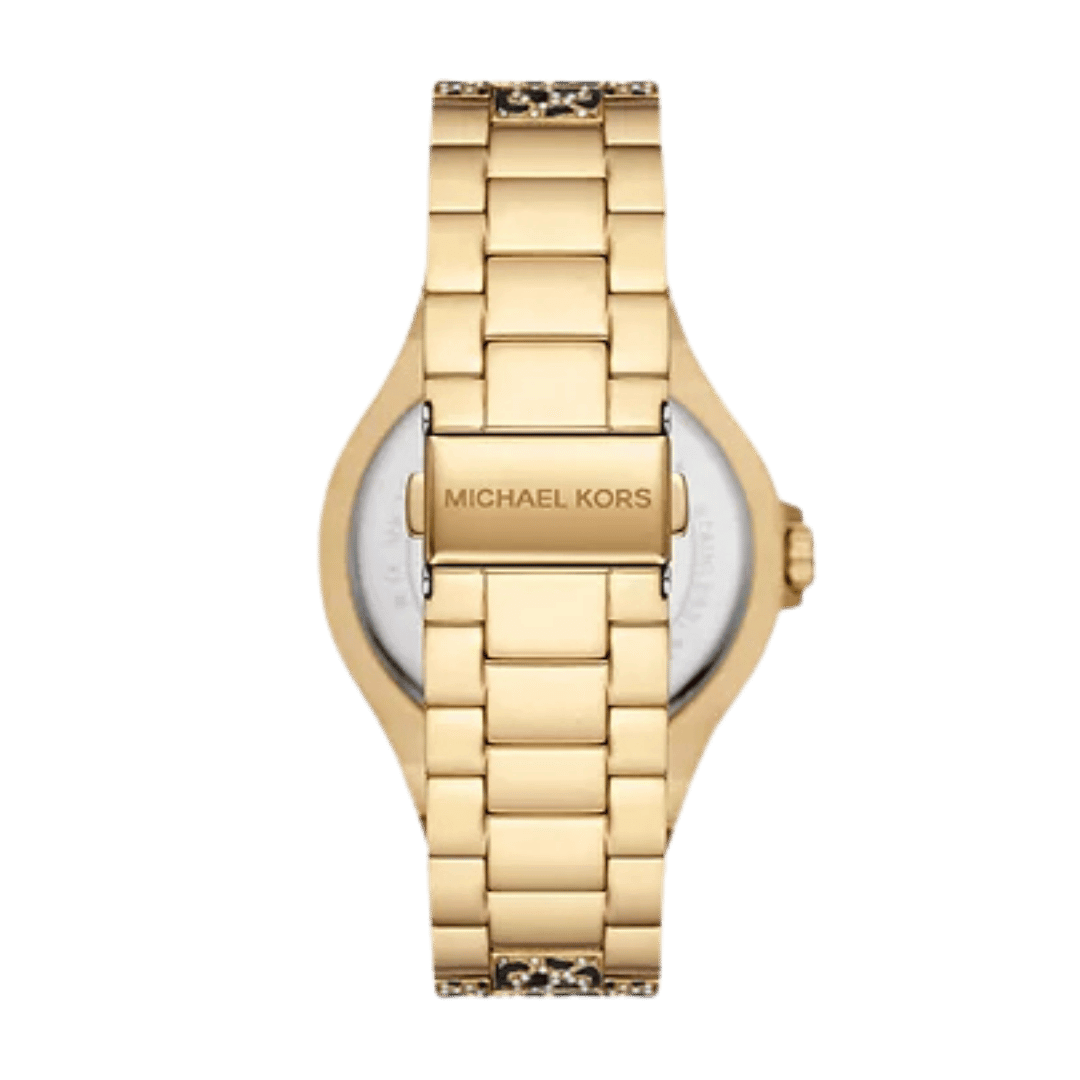 Original Michael Kors Lennox Animal Pavé Oversized for Women MK7284 – Black & Gold pavé dial with Black enamel animal print overlay – Black & Gold Stainless Steel Bracelet – Three-Hand Quartz Movement – “This Watch is brand new and 100% Authentic, and Comes with its original box, Bag, tags, and instruction manual”