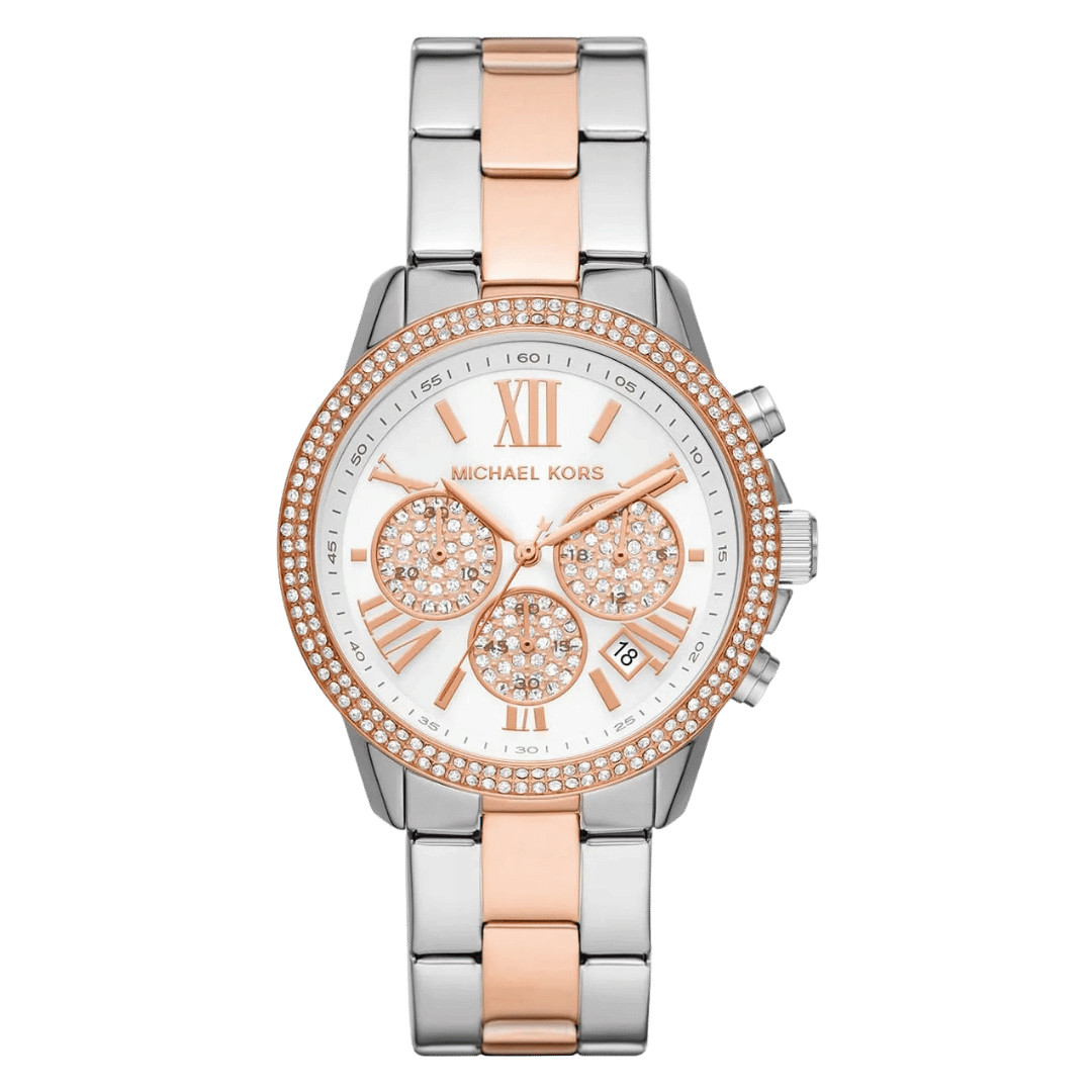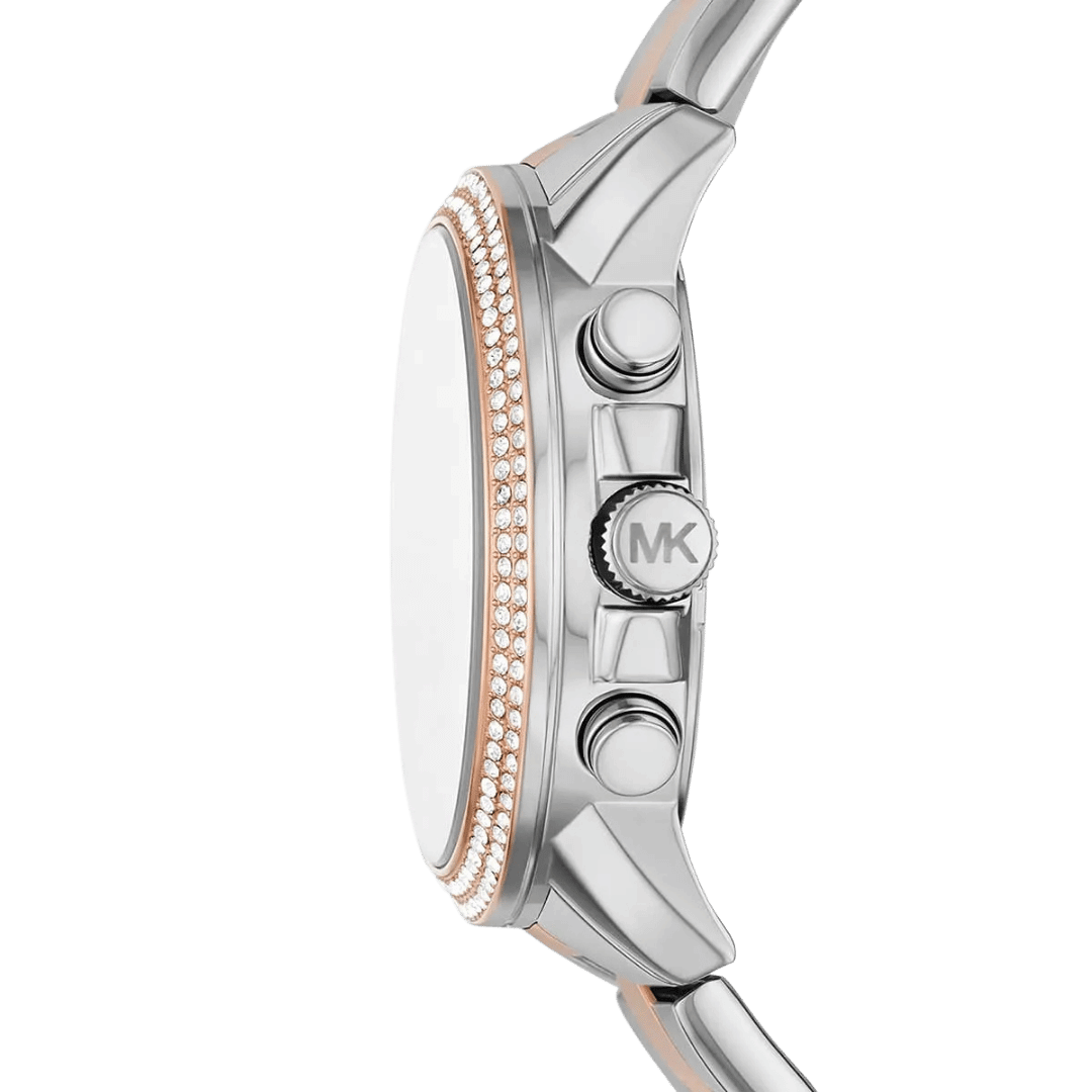 With White dial , Featured with Crystals decorated , and Patterned MK Logo Strap