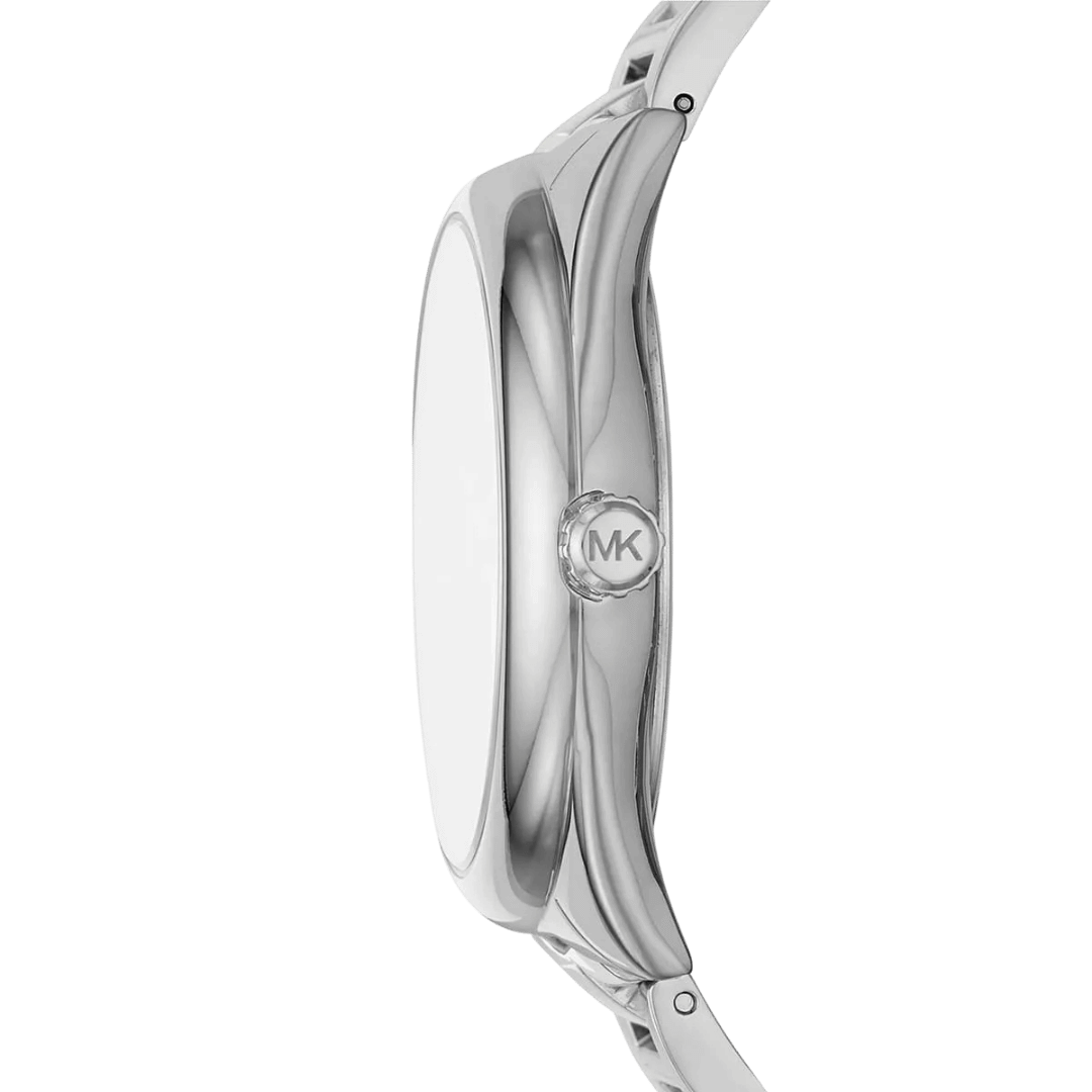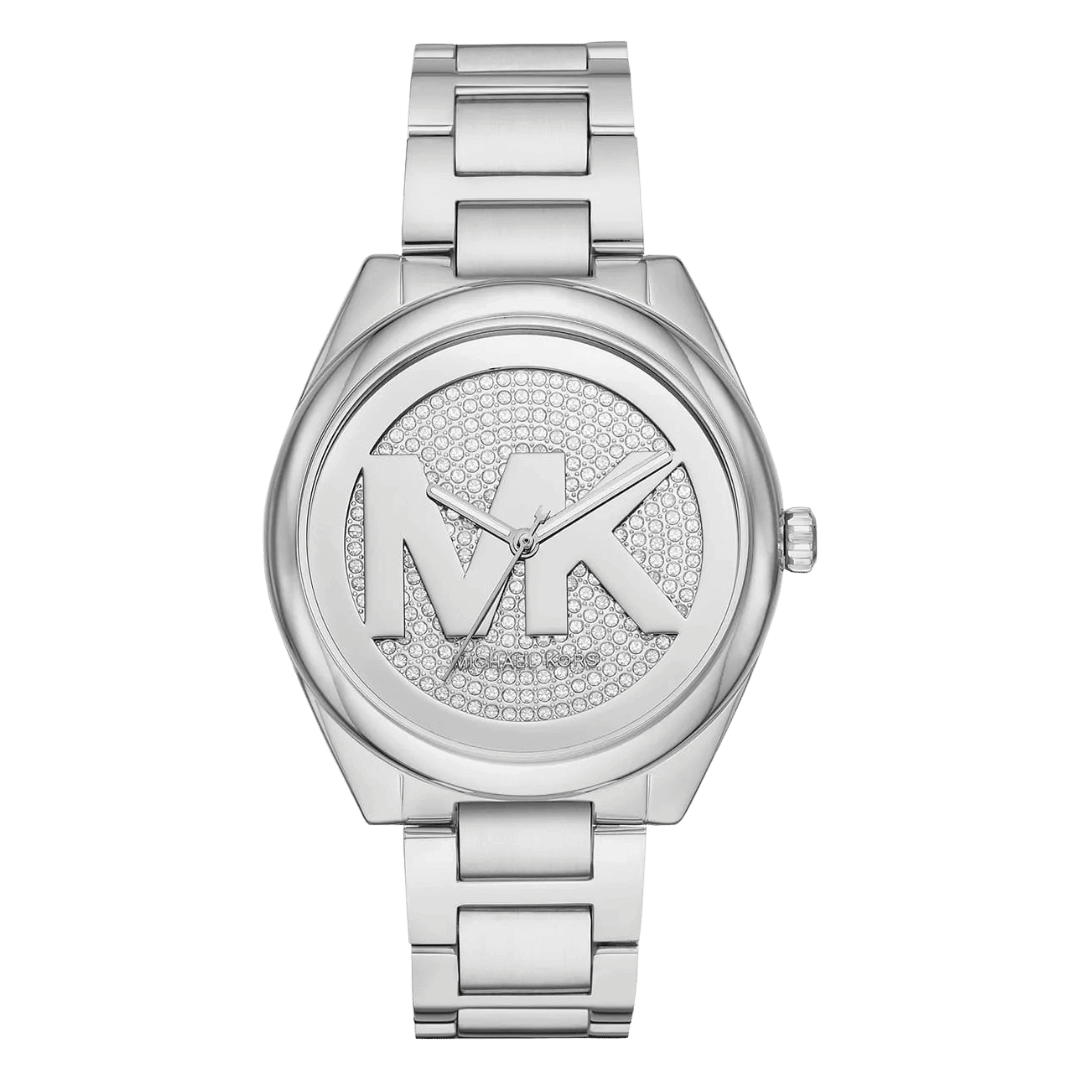 With White dial , Featured with Crystals decorated , and Patterned MK Logo Strap