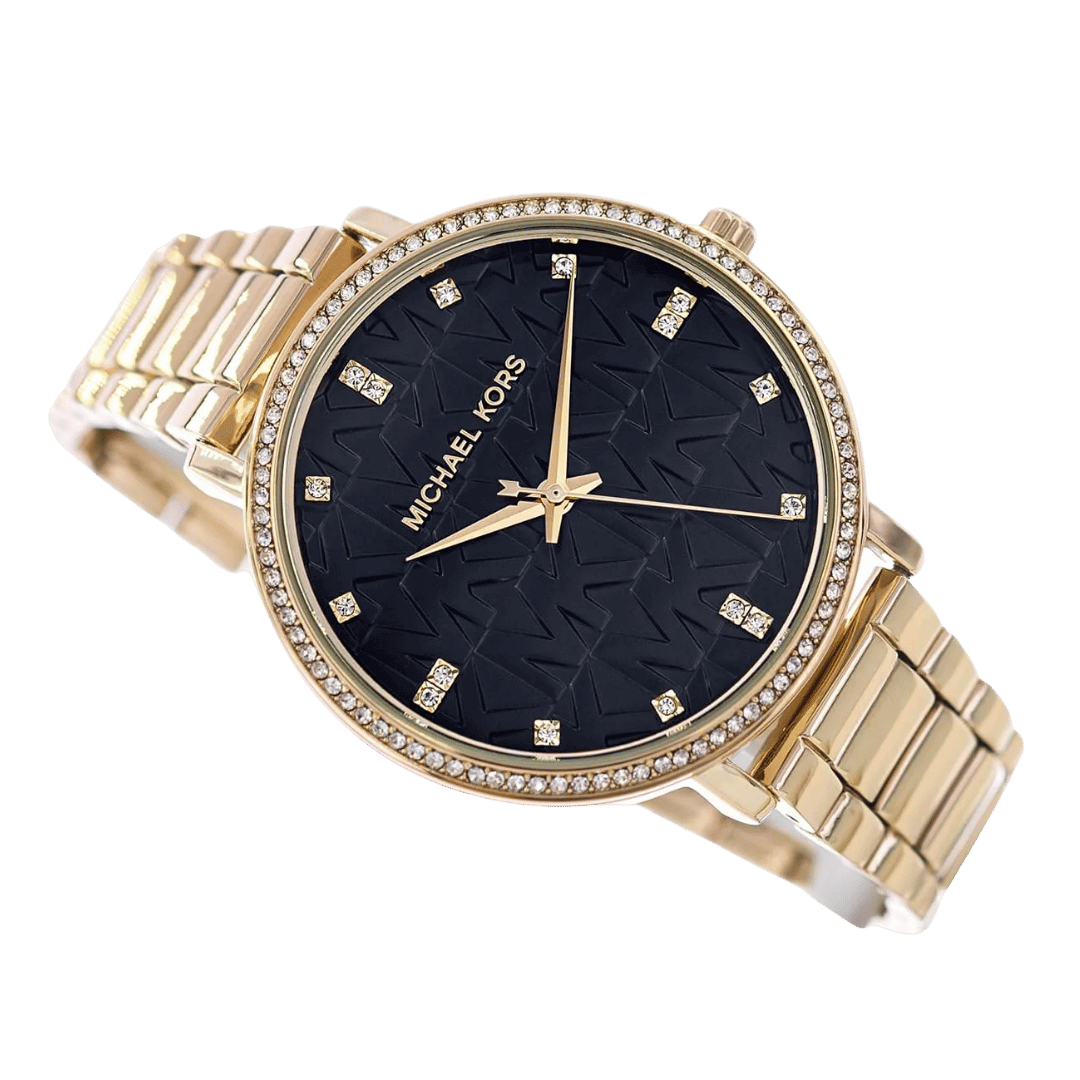 Original Michael Kors Watch For Women Pyper MK4593 – With Black dial , Featured with MK Logo dial – Stainless steel Metal belt with Gold color. ”This Watch is brand new and 100% Authentic, and Comes with it’s original box, Bag, tags, and instruction manual”