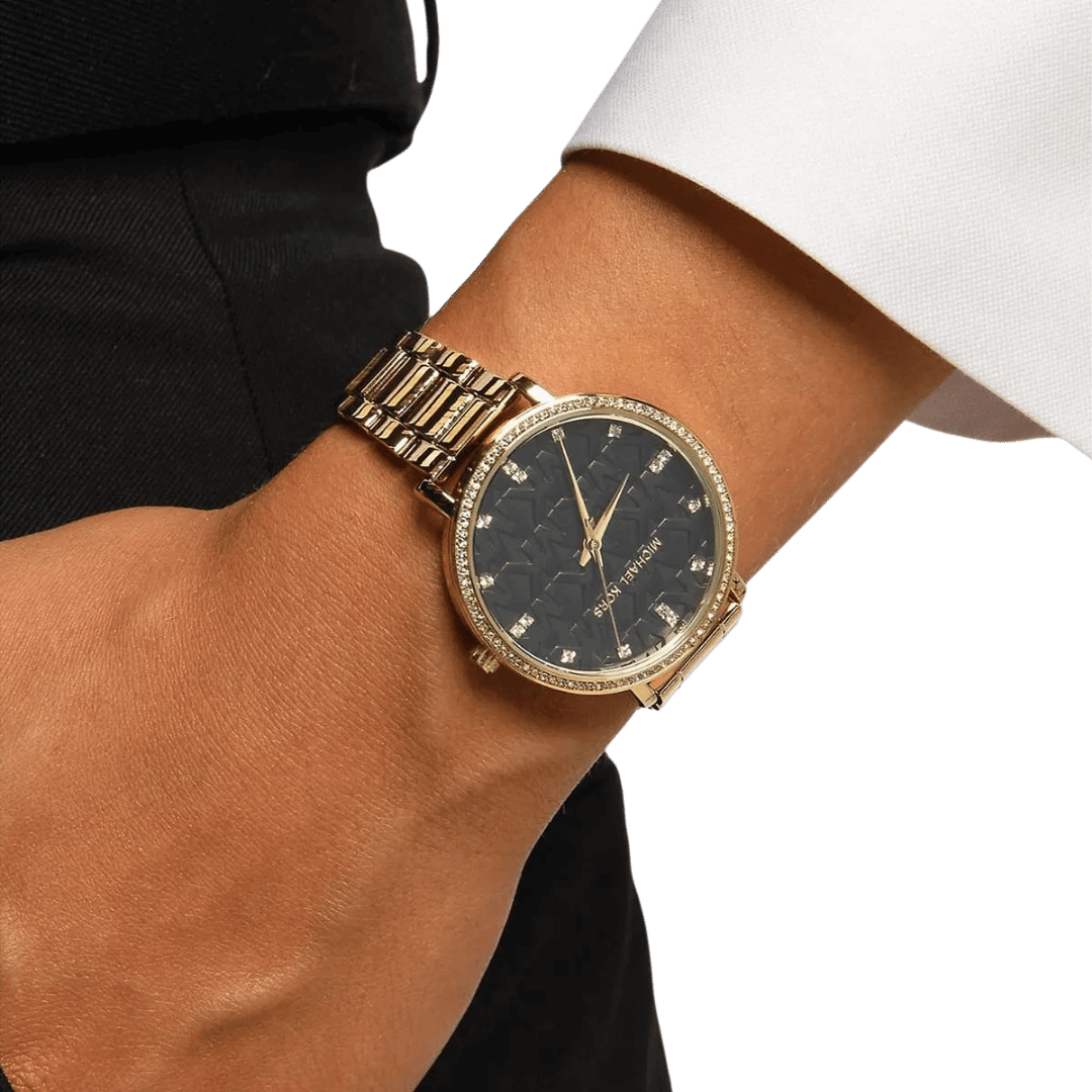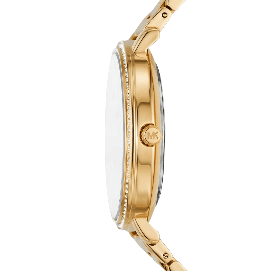 With White dial , Featured with Crystals decorated , and Patterned MK Logo Strap
