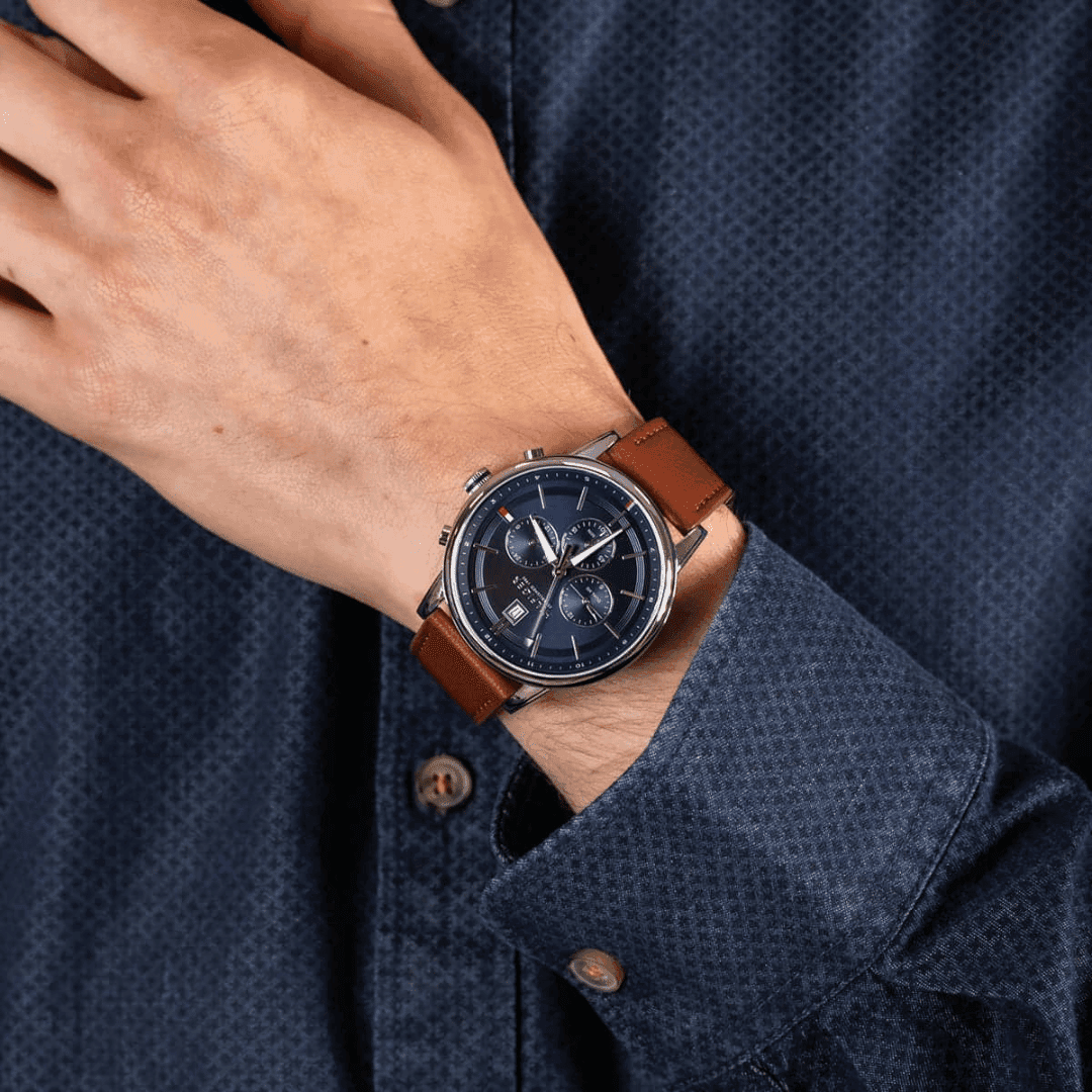 “Original Tommy Hilfiger Watch TH.320.1.20.2507 For Men Decker 1791561 With Navy dial, Brown Strap”