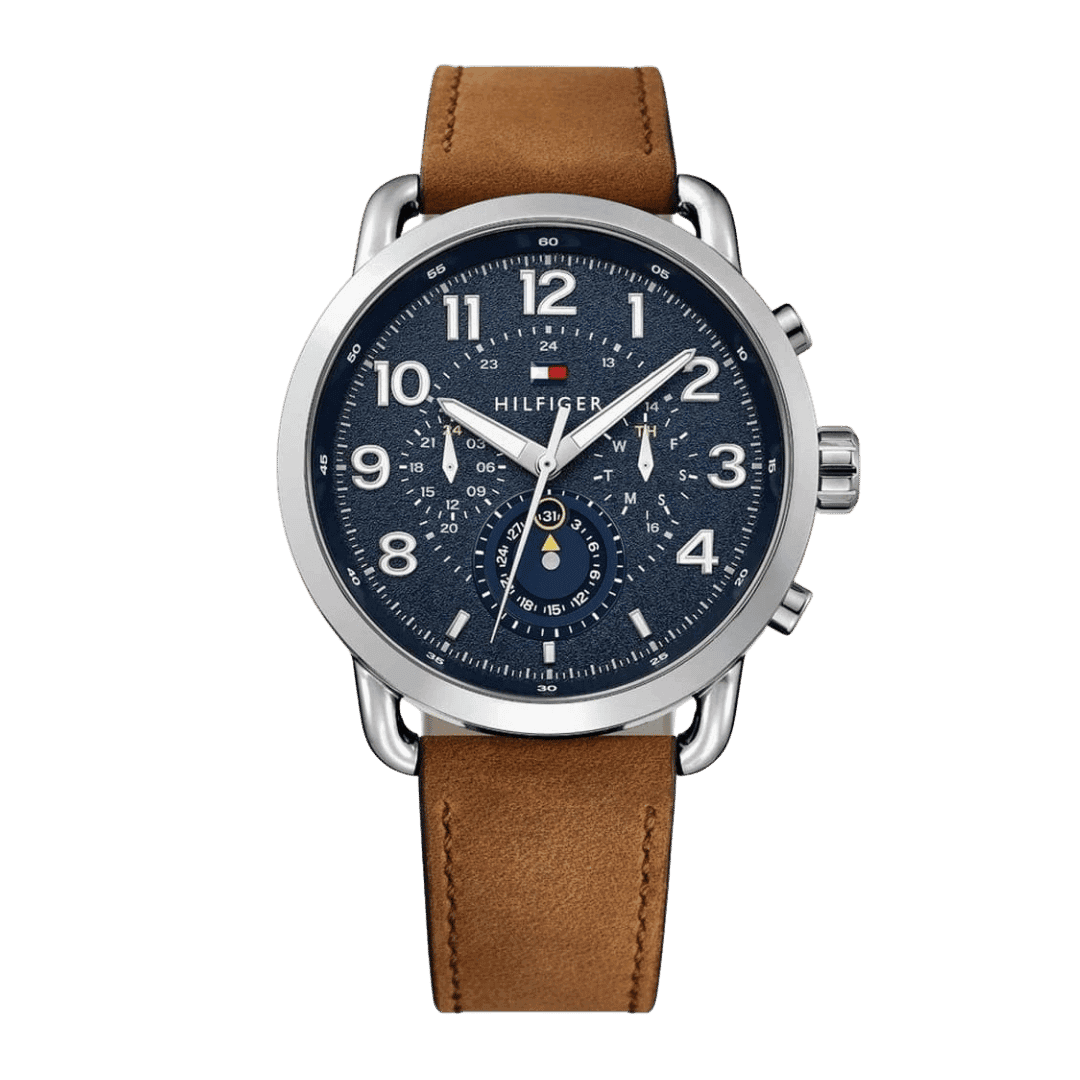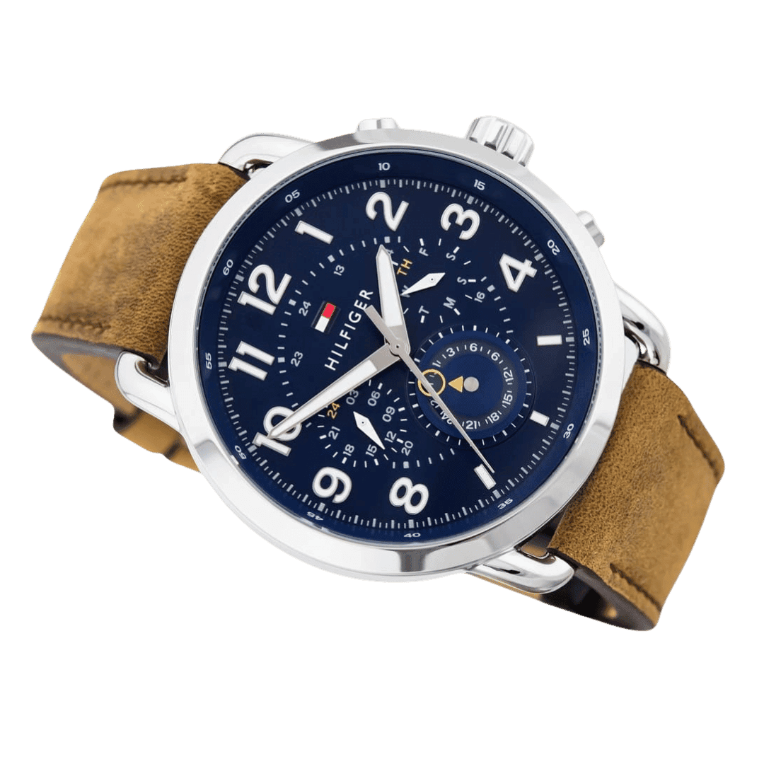 Original Tommy Hilfiger Men’s Blue Leather Casual Watch – 1791424 – 46mm