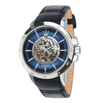 $630.00Original price was: $630.00.$516.00Current price is: $516.00.Original Maserati Watch Ingegno for Men R8821119002 – Silver Skeleton Dial – Black Leather Strap – Automatic Movement – ”This Watch is brand new and 100% Authentic, and Comes with its original box, Bag, tags, and instruction manual”